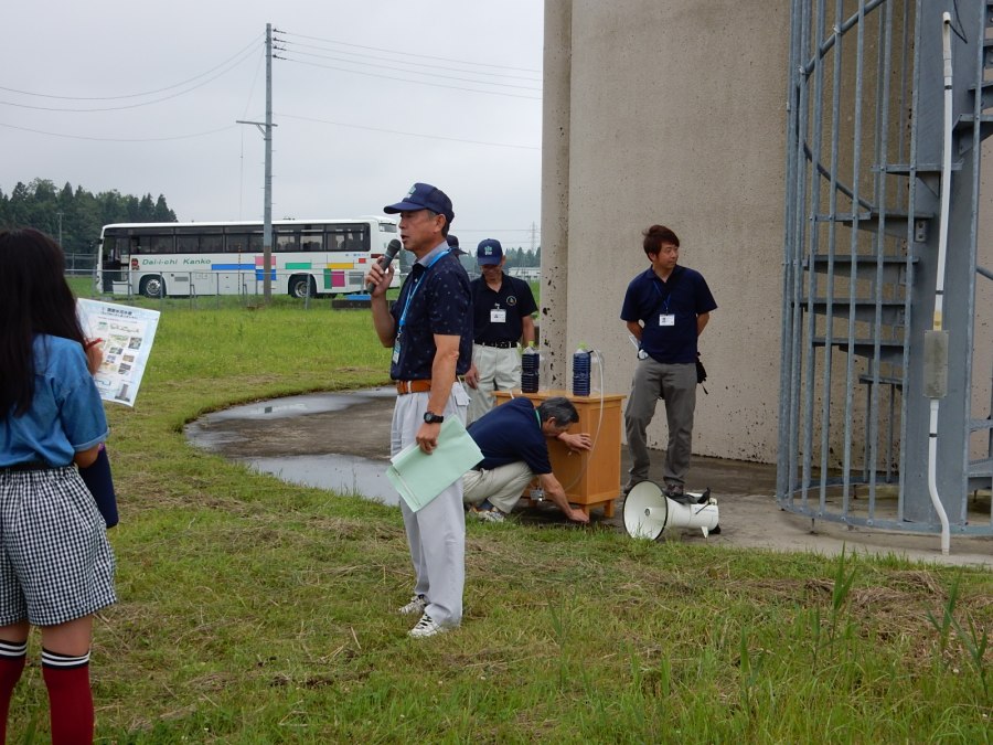 開講式が終わり、最初に秋田県能代地区土地改良区が管理している「調整水圧水槽」へ。