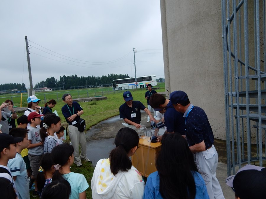 当日は、秋田市から25名の「水土里キッズ」が参加し、保護者やスタッフを含め、約60名での「わくわく探訪」となりました。この「わくわく探訪」は、小学校高学年を対象としており、今年で22回目を迎えます。子ども達に土地改良区の役割や、農業が盛んな秋田ならではの魅力を伝えて行くため、様々な体験を通じて、子ども達や保護者に「農」への理解を深めてもらう目的で行っています。
