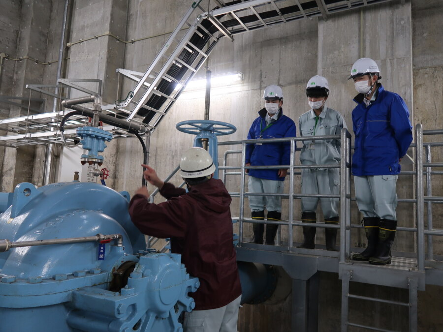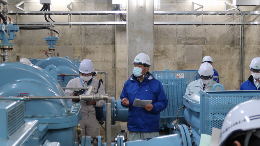 4月17日(月)、本会で実施している土地改良区体制強化事業の一環として、福部羅揚水機場(大仙市協和)にて基幹水利施設保全管理技術向上研修を行い、県内土地改良区から13名が研修に参加しました。