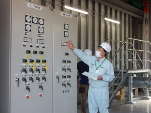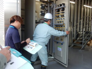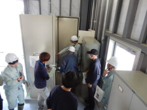 受配電設備のそれぞれの役割についての説明に加え、実際に設備を動かして実演するなど、受講者に配慮した説明をしておりました。