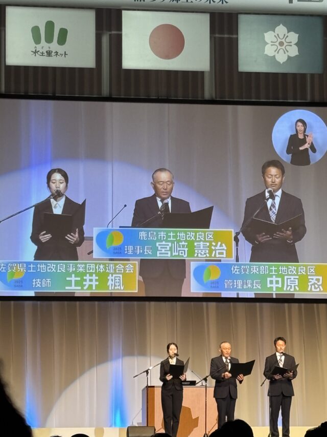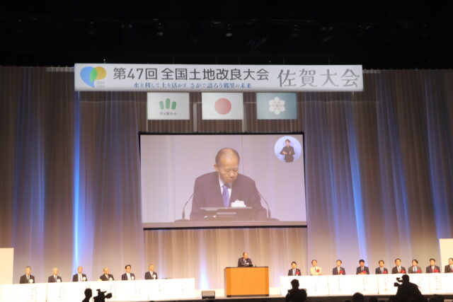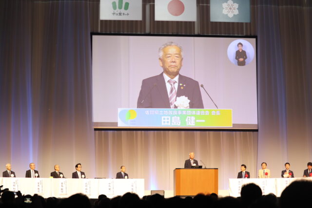 大会は、「水を利して土を活かす さがで語ろう郷里の未来」をテーマに、全国土地改良事業団体連合会、佐賀県土地改良事業団体連合会の主催で開催されました。