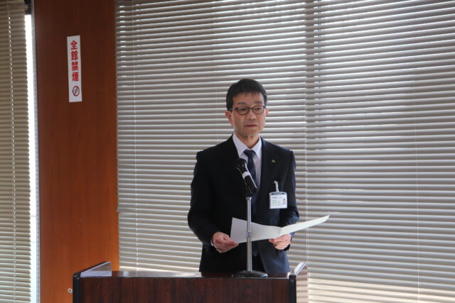開会にあたり、松田会長から「4年連続の大規模な豪雨災害により、甚大な被害が発生したほか、生産資材や燃料等の価格高騰、基幹的農業従事者の減少など、農業生産現場を取り巻く環境は厳しい状況が続いている。本県では、水田の大区画化や汎用化等を推進し、ICTを活用した維持管理の効率化を進めていく必要がある。本県農業・農村の更なる発展と国内の食料安全保障の確保に貢献できるよう、役職員一同取り組んでいく。」と挨拶が述べられました。