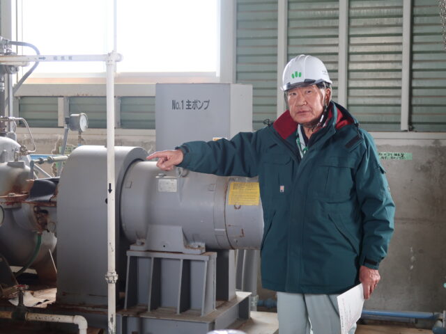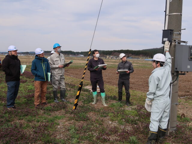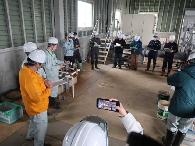令和8年4月9日(木)、三種町の鯉川揚水機にて、令和7年度基幹水利施設保全管理技術向上研修現場研修会が行われ、県内の土地改良区からは11名の方々にご参加いただきました。