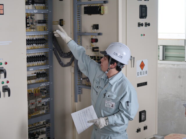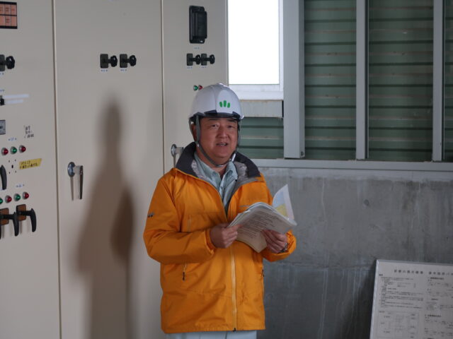 次に、施設保全班の大石技師より、各種電気設備の説明や管理方法について説明がありました。